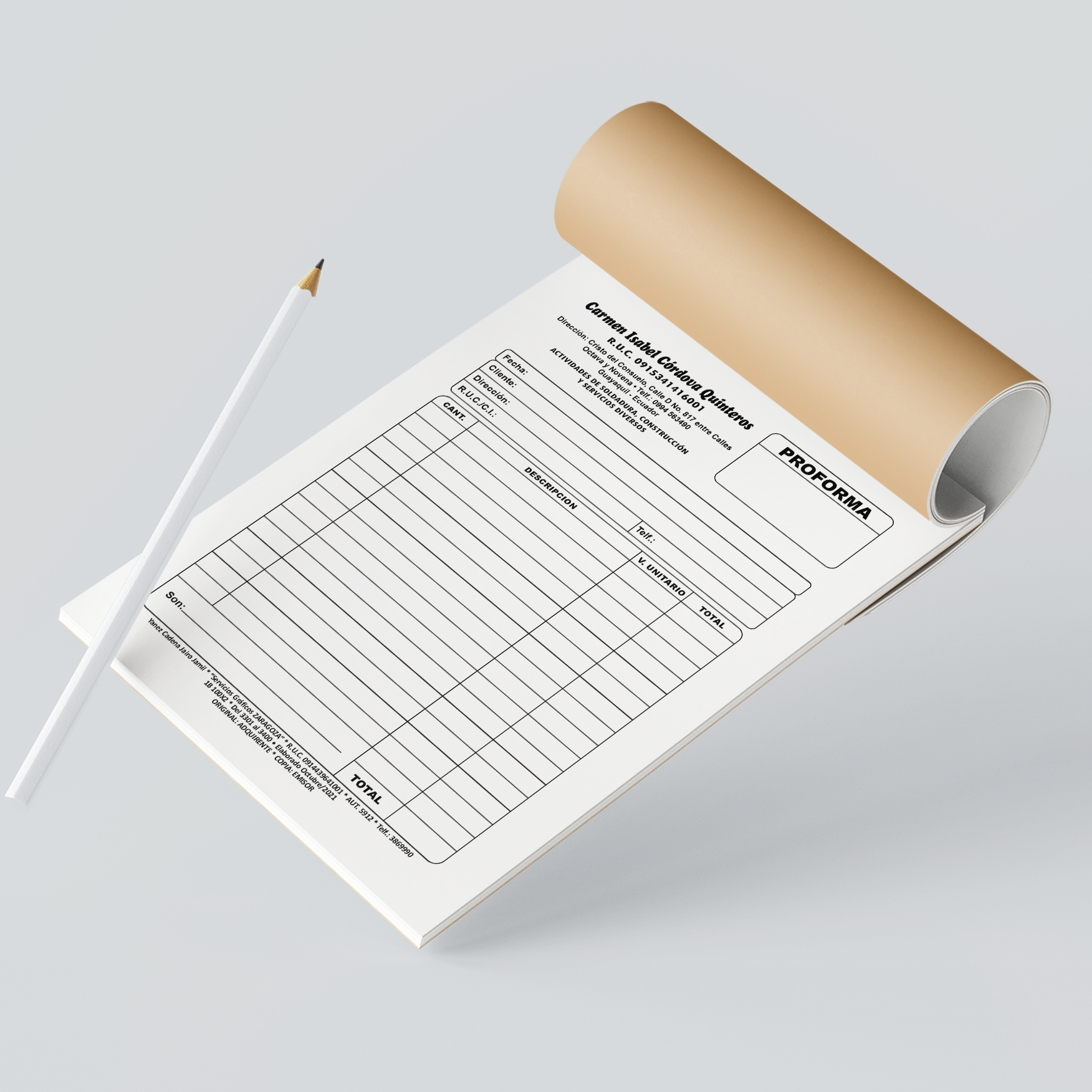 Presentación: Block de 25, 50 ó 100 hojas, con o sin copia.
