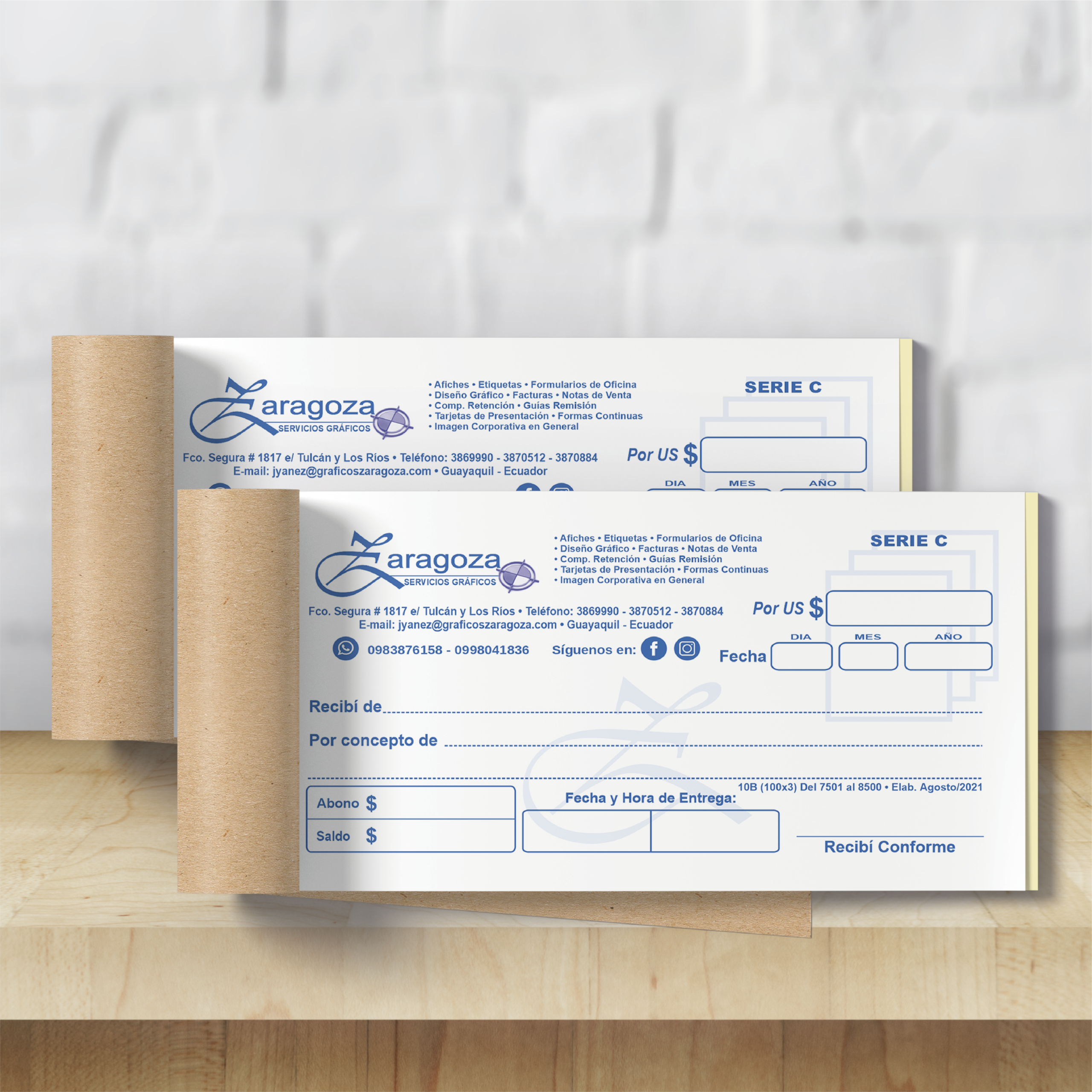 - Material: En papel autocopiativo o bond